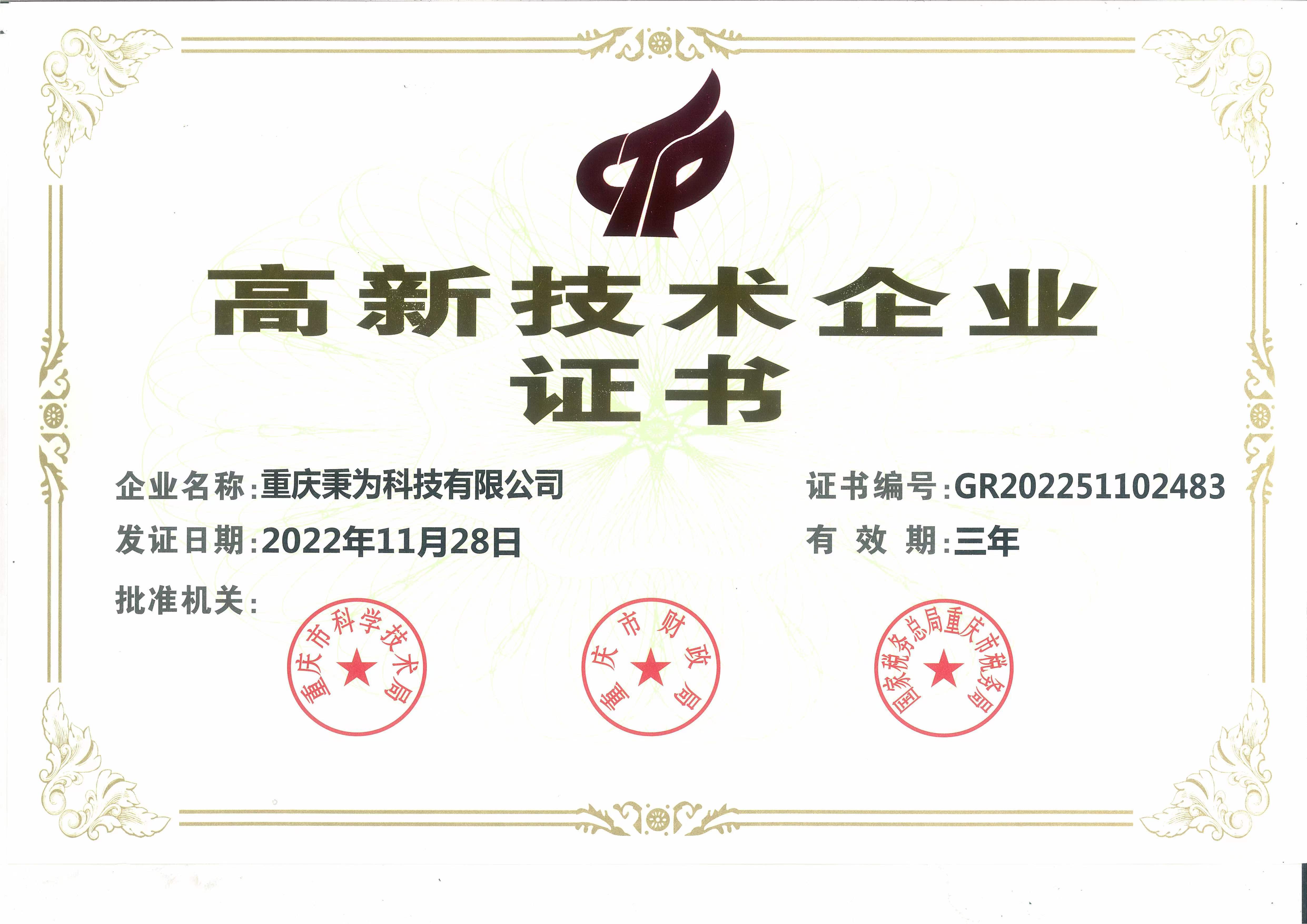 高新技術(shù)企業(yè)證書